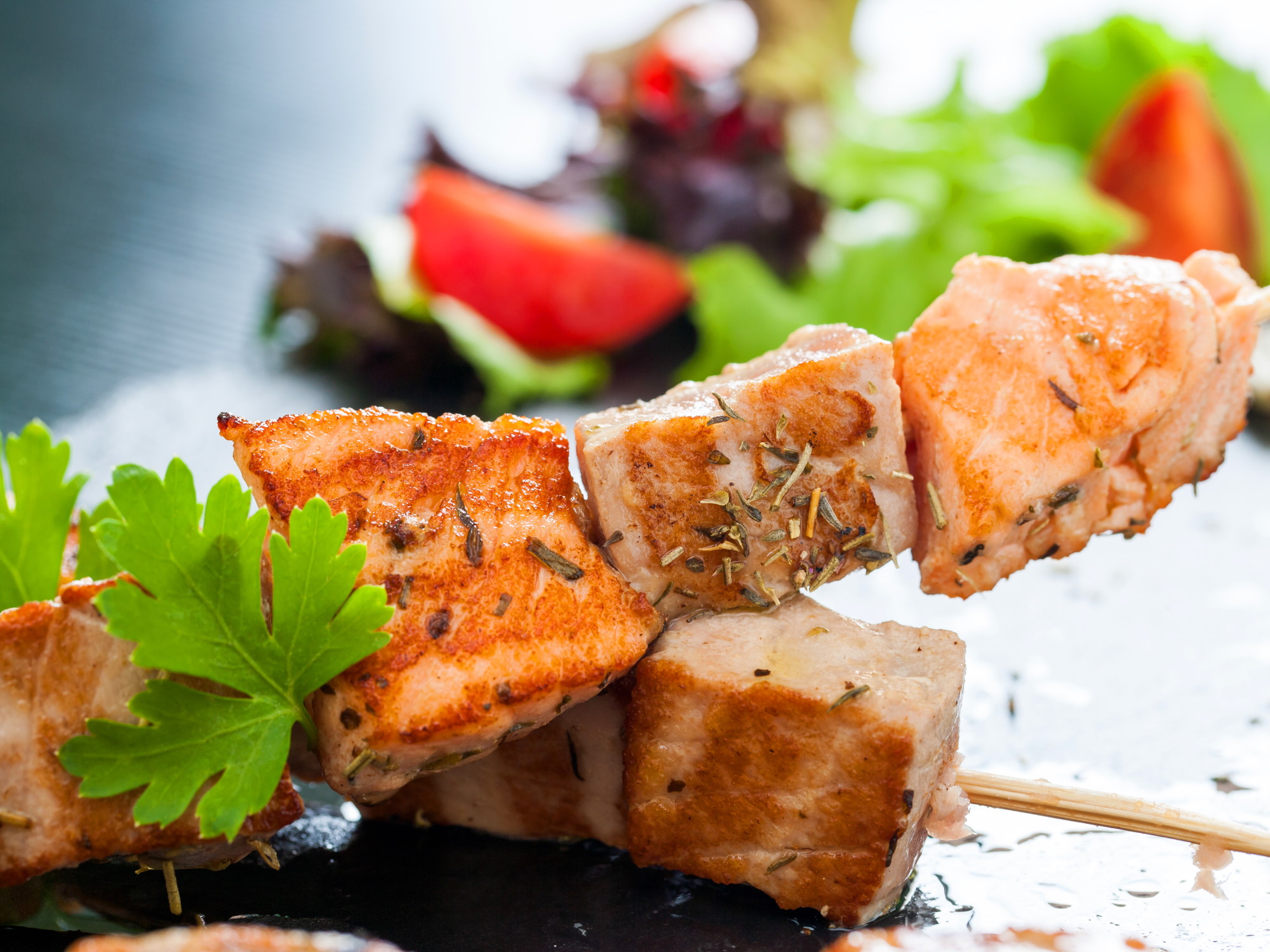 Шашлык из тунца — это сочное горячее рыбное блюдо, идеально подходящее для банкетов, корпоративных мероприятий, свадеб и фуршетов в Москве. Филе тунца маринуется и обжаривается на мангале до легкой золотистой корочки, сохраняя мягкость, сочность и насыщенный вкус рыбы.