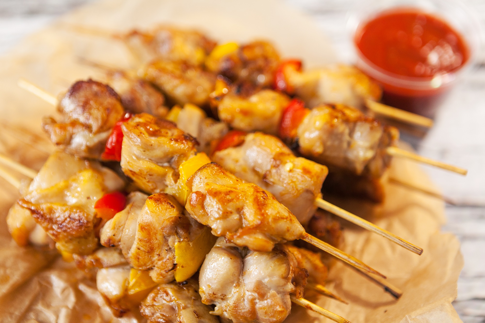 Формат подачи: горячее мясное блюдо на шпажках, удобно для фуршетного и банкетного формата.