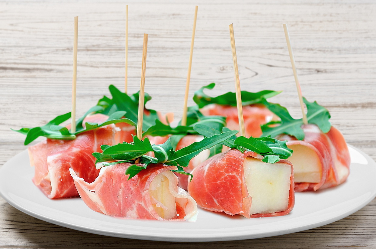 Канапе Испаньол с хамоном — элегантная мясная закуска для фуршетного меню в Москве.
