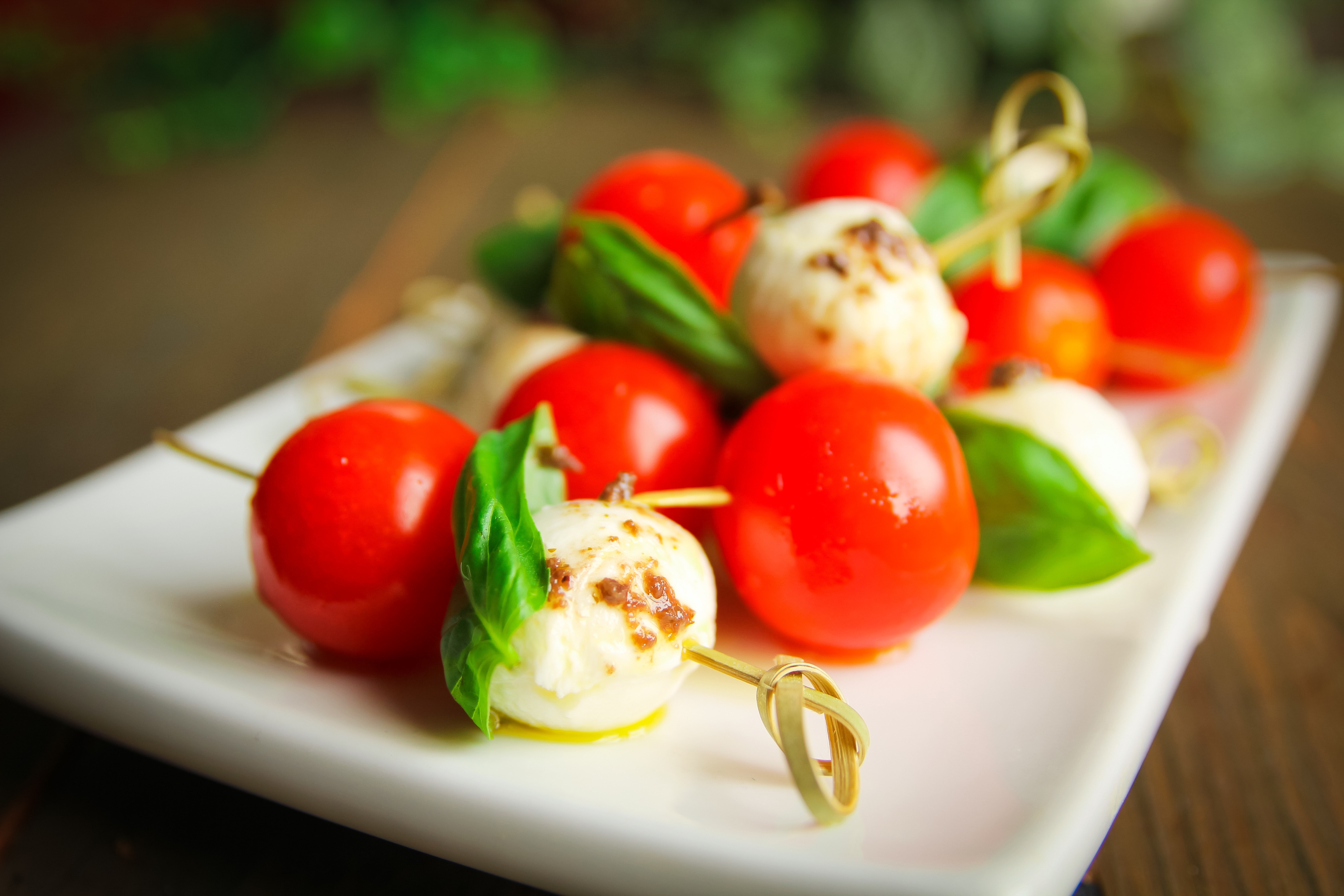 Канапе Мини-моцарелла — универсальная овощная закуска для фуршетного стола в Москве.
