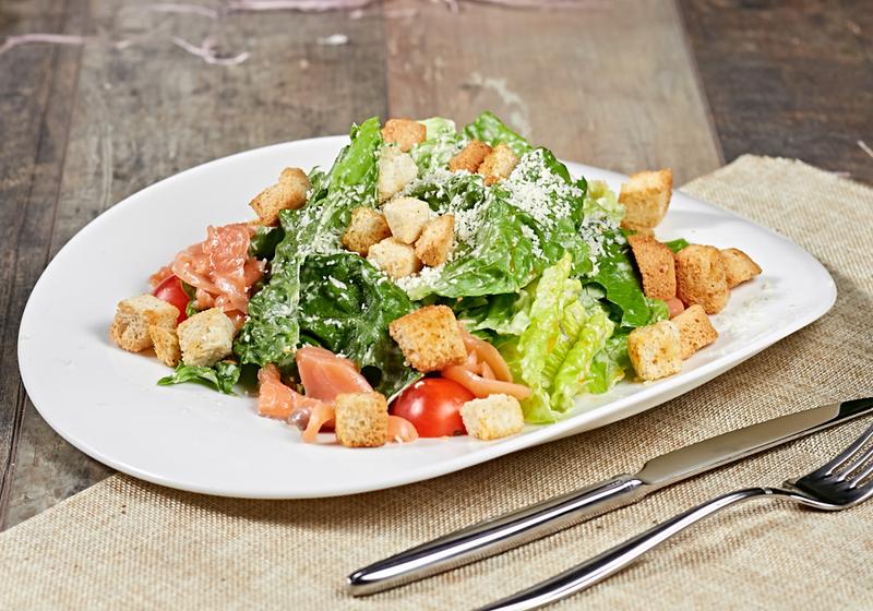 Салат Цезарь с семгой — популярная закуска для банкетного стола и фуршета в Москве.