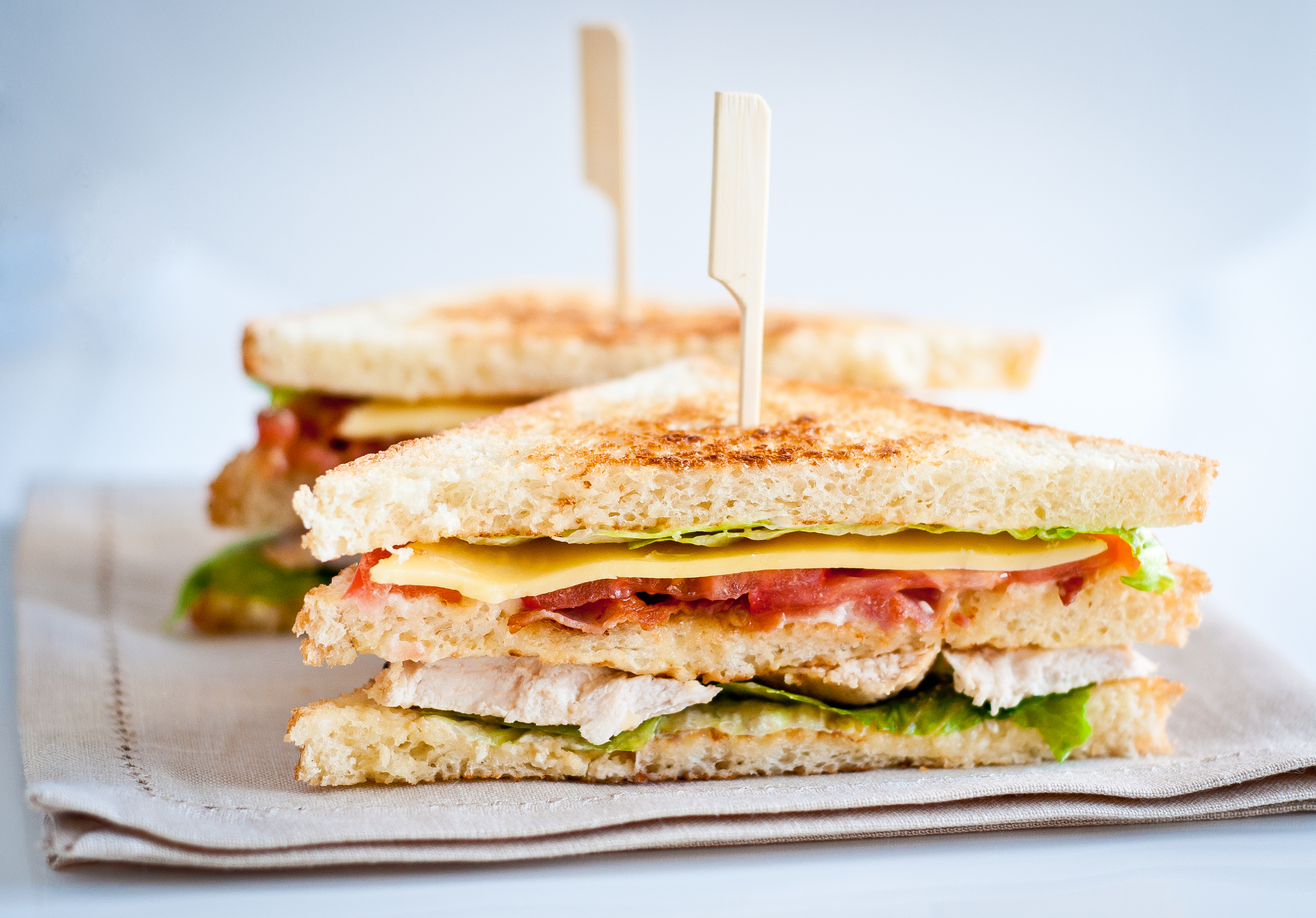 Сэндвич с курицей — сытная и свежая закуска для банкетов, корпоративных мероприятий и частных праздников в Москве. Мягкий тостовый хлеб сочетается с запечённой курицей, сыром, салатным листом, огурцом и сочным помидором, создавая гармоничное сочетание вкусов.