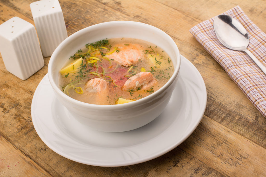Состав: семга, картофель, морковь, репчатый лук, зелень, специи.